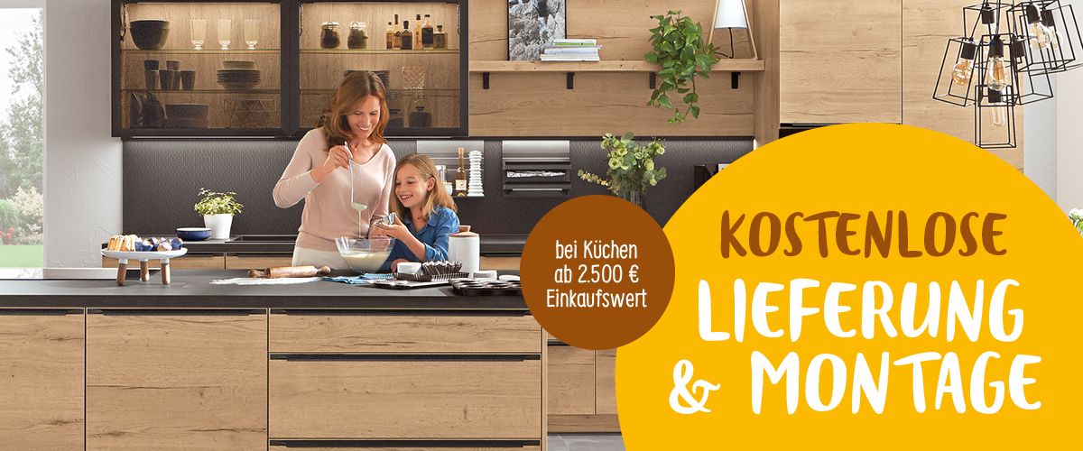 Kaufe eine Küche im Zeitraum vom 01. bis 21. November und wir liefern und montieren kostenfrei! Gültig bei Küchen ab einem Einkaufswert von 2.500€.