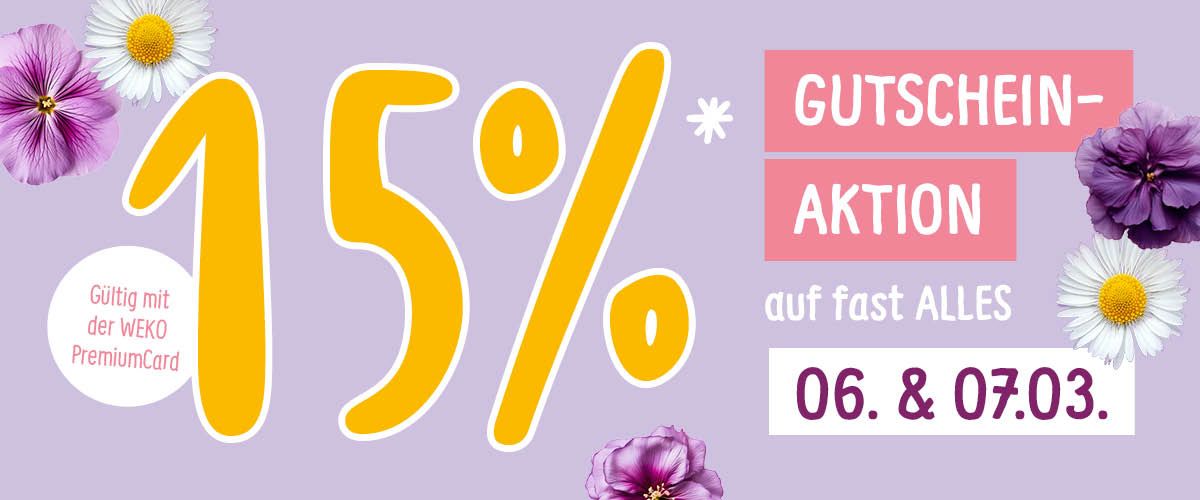 Ausgenommen Produkte von set one by Musterring, Geschenkgutscheine, Bücher sowie bereits reduzierte und in Prospekten, Mailings und Anzeigen beworbene Ware, die im Haus gekennzeichnet ist. Nicht gültig für bereits bestehende Aufträge, sonstige Prozentaktionen, Dienstleistungen, Sonderkonditionen, für die Partnergeschäfte Fa. Lipp und Fa. Dandl und im Restaurant. Zusätzlich bis zu 3% mit der WEKO PremiumCard.