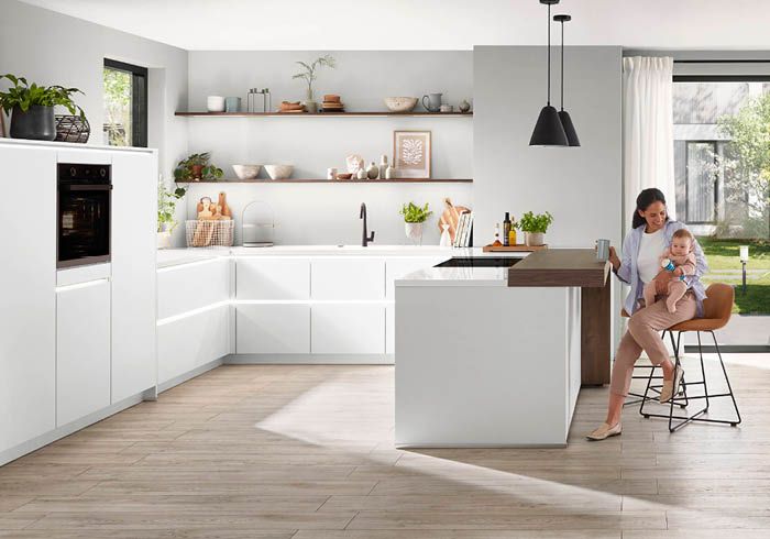 Weiße oder helle Küchen strahlen eine zeitlose Eleganz aus und vergrößern optisch jeden Raum. Sie schaffen eine offene Atmosphäre, reflektieren das Licht und bieten eine vielseitige Leinwand für individuelle Dekorationsstile. Allerdings erfordern sie einen höheren Reinigungsaufwand, da Schmutz und Flecken leicht sichtbar sind. Weiße Küchen bieten eine elegante und luftige Option für jeden, der eine helle Atmosphäre bevorzugt. Und mit der richtigen Pflege werden diese Küchen zu einem Highlight im Zuhause.